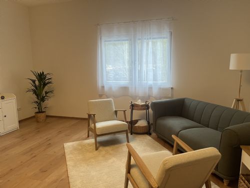 Therapieraum Mein Therapieraum ist ein geschützter Ort der Ruhe, des Ankommens und des Gehörtwerdens. Eine warme, harmonische Atmosphäre lädt dazu ein, den Alltag für einen Moment loszulassen und sich mit allem zeigen zu dürfen, was gerade da ist. Hier entsteht Raum für Vertrauen, neue Perspektiven und behutsame